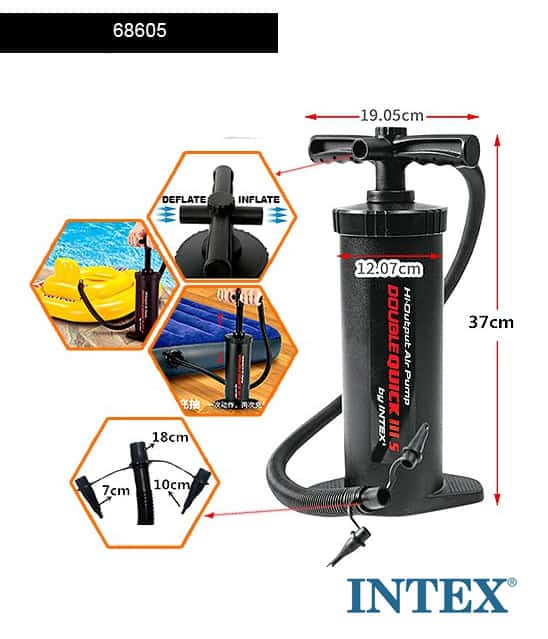 ‘- Hinchador manual Double Quick IIIS de Intex, mide 37 cm y tiene doble velocidad (infla/desinfla en ambos movimientos)