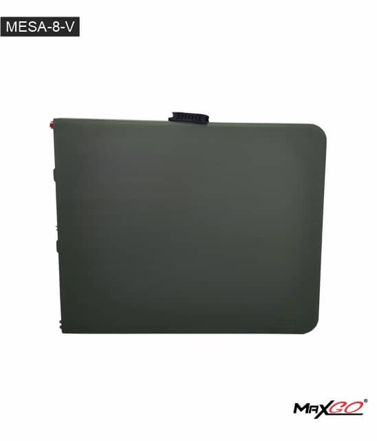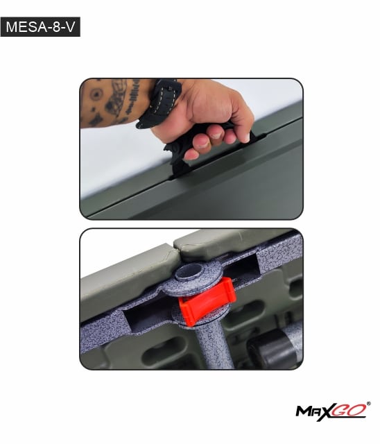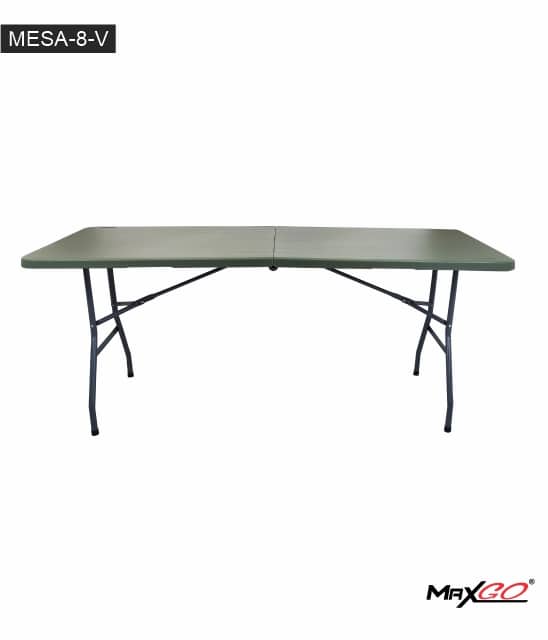 Mesa plegable en polietileno de alta densidad (HDPE) y estructura de acero.