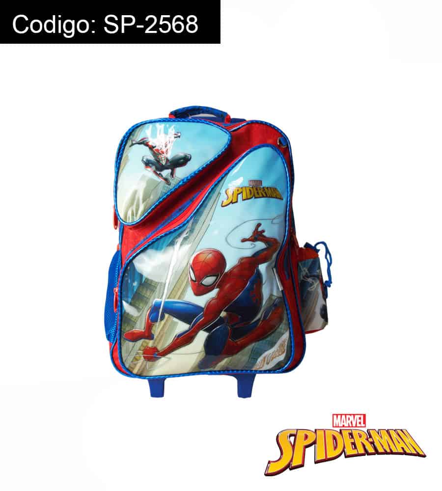 Acompaña a Spiderman, tu superhéroe favorito en la vuelta a clases con esta entretenida Mochila con ruedas, coloridos diseños, confeccionada en materiales suaves y resistentes, amplio compartimento principal con cierre, dos bolsillos laterales de malla, tirantes ajustables, asa de mano en la parte superior.