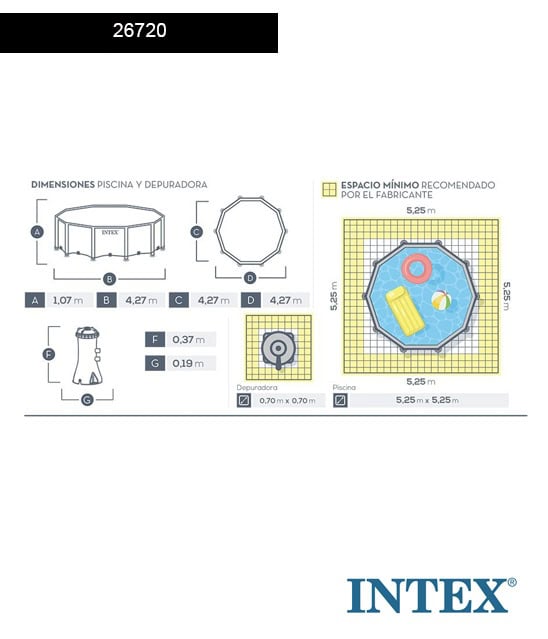 La piscina desmontable Intex 26720 Prism Frame es como cada Piscina de la línea Prism Frame virtualmente capaz de satisfacer todas las necesidades familiares, desde una barbacoa con los amigos hasta un baño el domingo por la tarde. La dimensión es amplia lo suficiente como para garantizar el éxito de cada fiesta en la piscina.