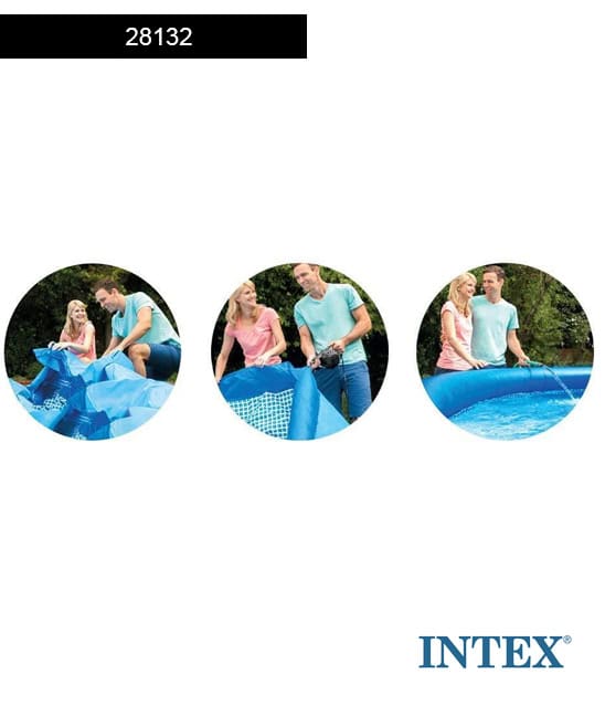 – Las piscinas desmontables Intex son de fácil instalación: extender sobre terreno firme y nivelado, inflar el anillo superior y llenar con agua.