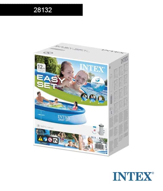 – Piscina desmontable Intex con aro superior hinchable. De la línea Easy Set, la piscina es redonda y las medidas son: 366×76 cm.
