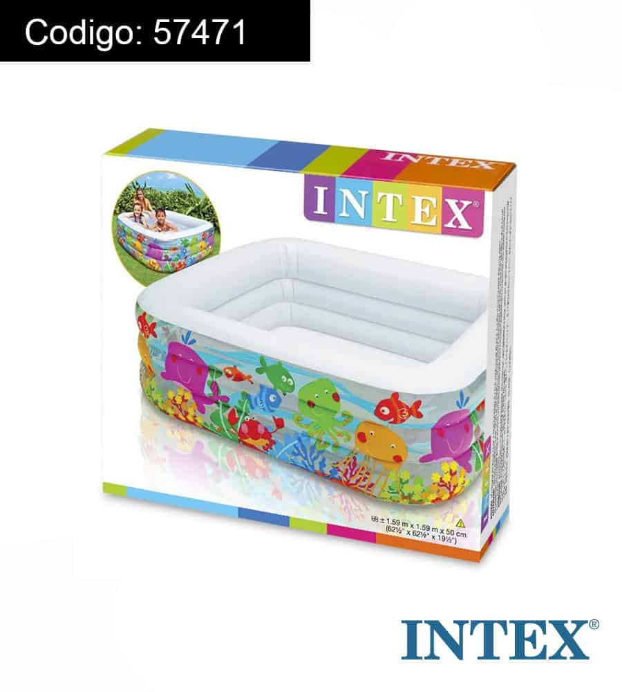 - Piscina hinchable Intex modelo Sea Aquarium. Medidas: 159x159x50 cm. Capacidad: 340 litros