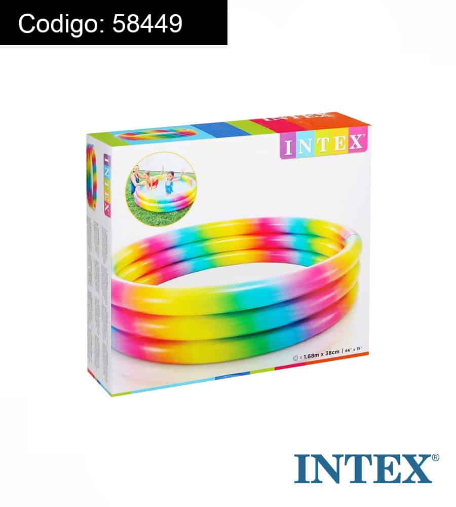 - Piscina hinchable Intex. Medidas: 168×38 cm. Capacidad: 581 litros