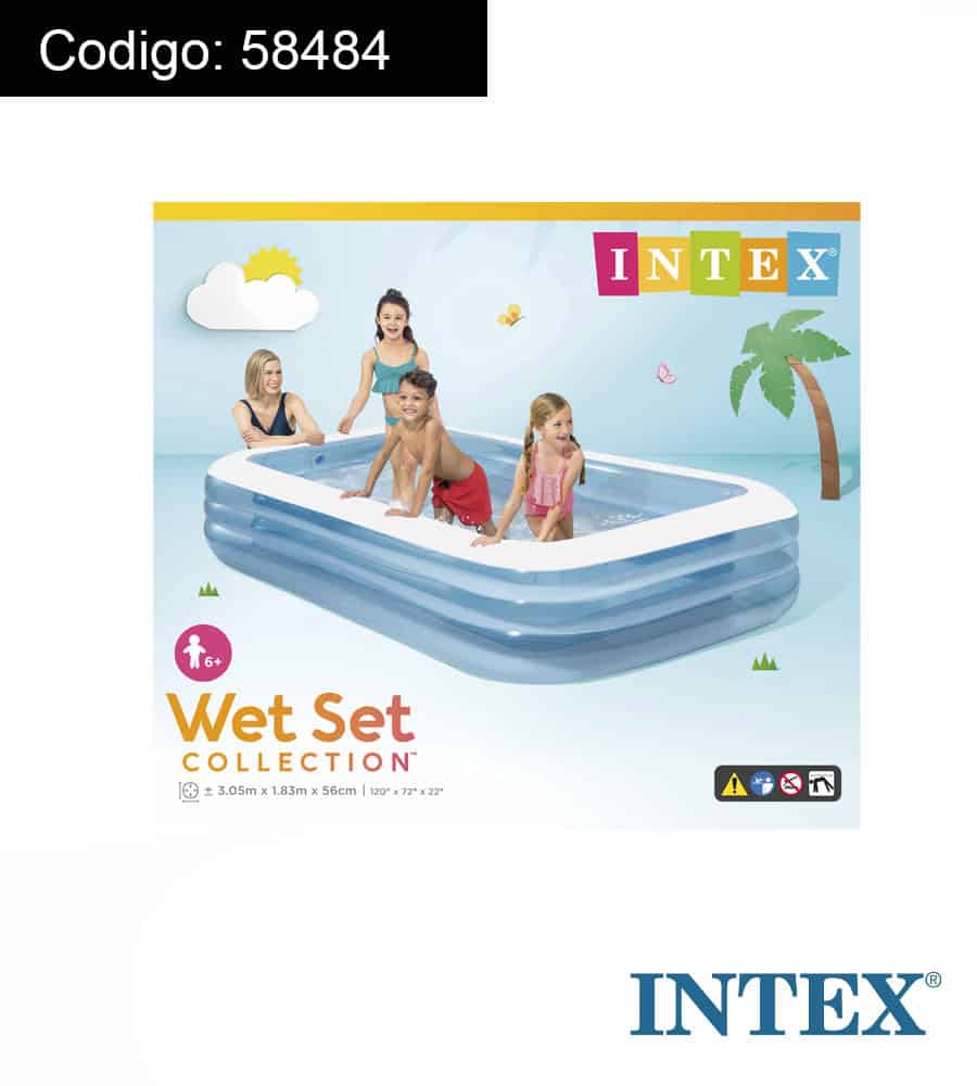 - Piscina hinchable familiar, medidas 305x183x56 cm diseñada color azul celeste Material y complementos: piscina fabricada con vinilo resistente de larga duración, con 3 cámaras de aire independientes, tapón desagüe
