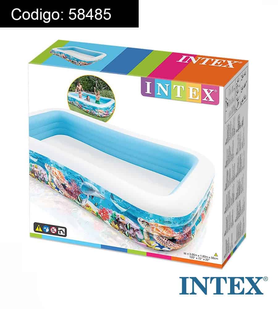 - Piscina hinchable infantil, medidas 305x183x56 cm con estampado tropical Material y complementos: piscina fabricada con vinilo resistente de larga duración con 3 aros hinchables, tapón desagüe