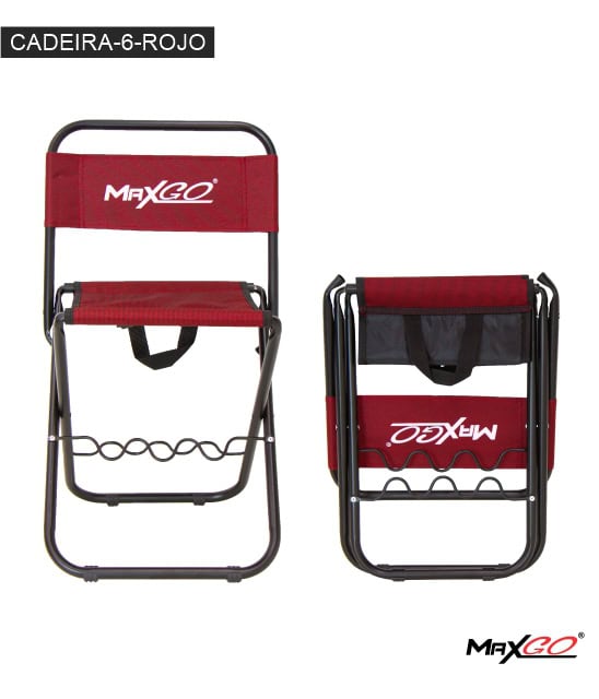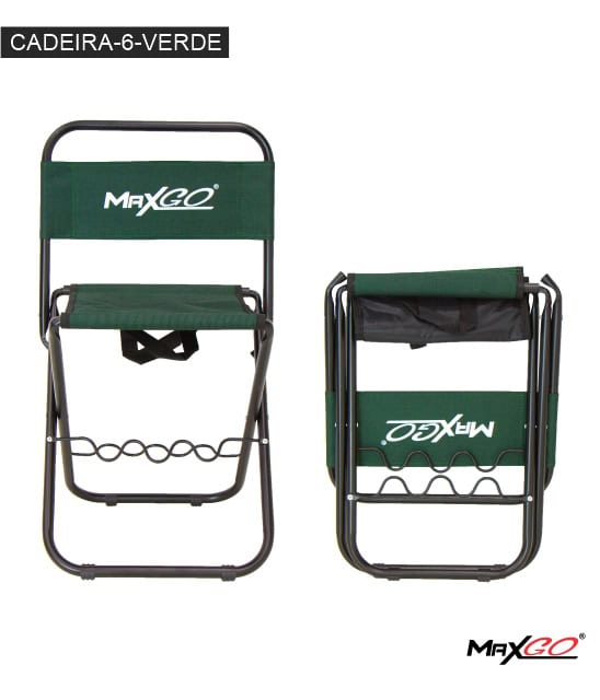 Cadeira 6 Maxgo, silla plegable y portátil, construida con tejido Oxford 600D, resistente y duradero, cuenta con un soporte para vara de pescar, ideal para acampar, pescar y actividades al aire libre, disponible en 6 colores: azul, rojo, verde, camuflaje M y camuflaje V.